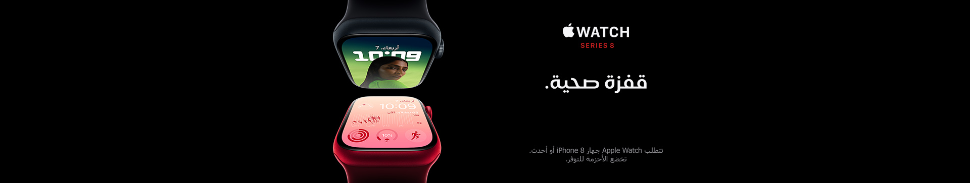 تأتيك Apple Watch Series 8 بشاشة حاضرة دائماً، كبيرة ومتألقة بكل ما فيها. حواف ضيقة تتّسع معها الشاشة فتنساب لتصل إلى الأطراف. والنتيجة، انسجام تام وأنيق مع انحناءات الإطار. فعلاً تحفة.