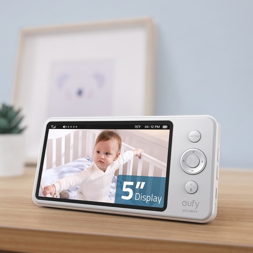 اطمئن على سلامة طفلك عبر شاشة العرض الكبيرة مقاس 5 بوصة، والمشاهدة المباشرة غير المهتزة والواضحة من أي مكان في منزلك، مع تغطية لاسلكية تصل إلى 1000 قدم.