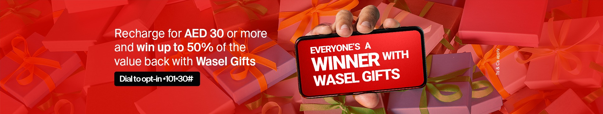 Get 50% value back on every recharge of AED 30 or more with Wasel Gifts!