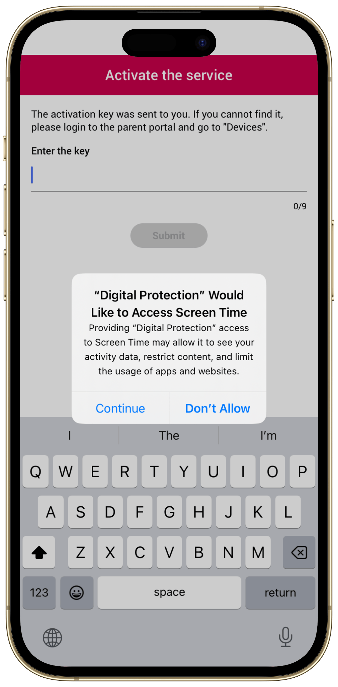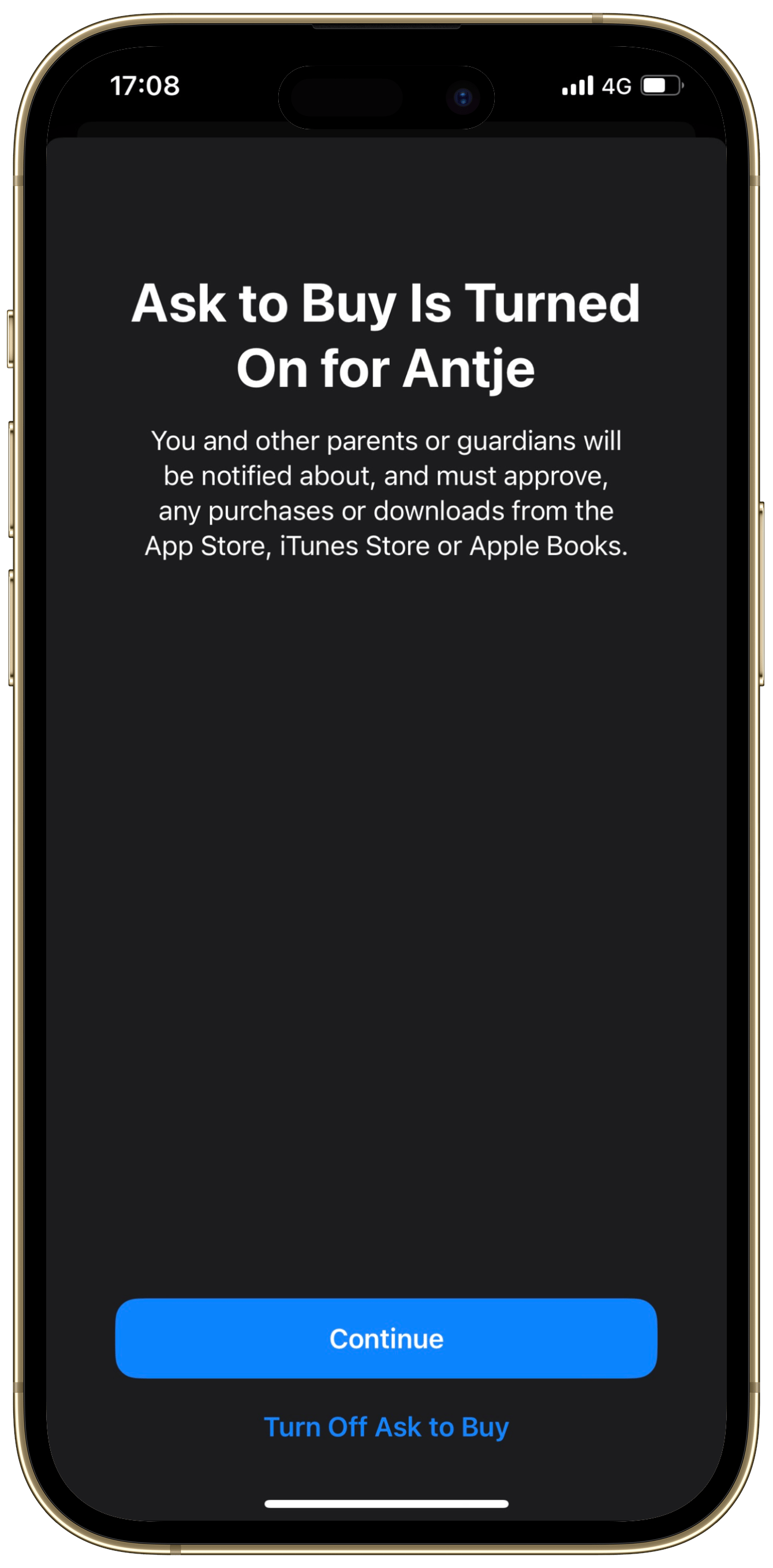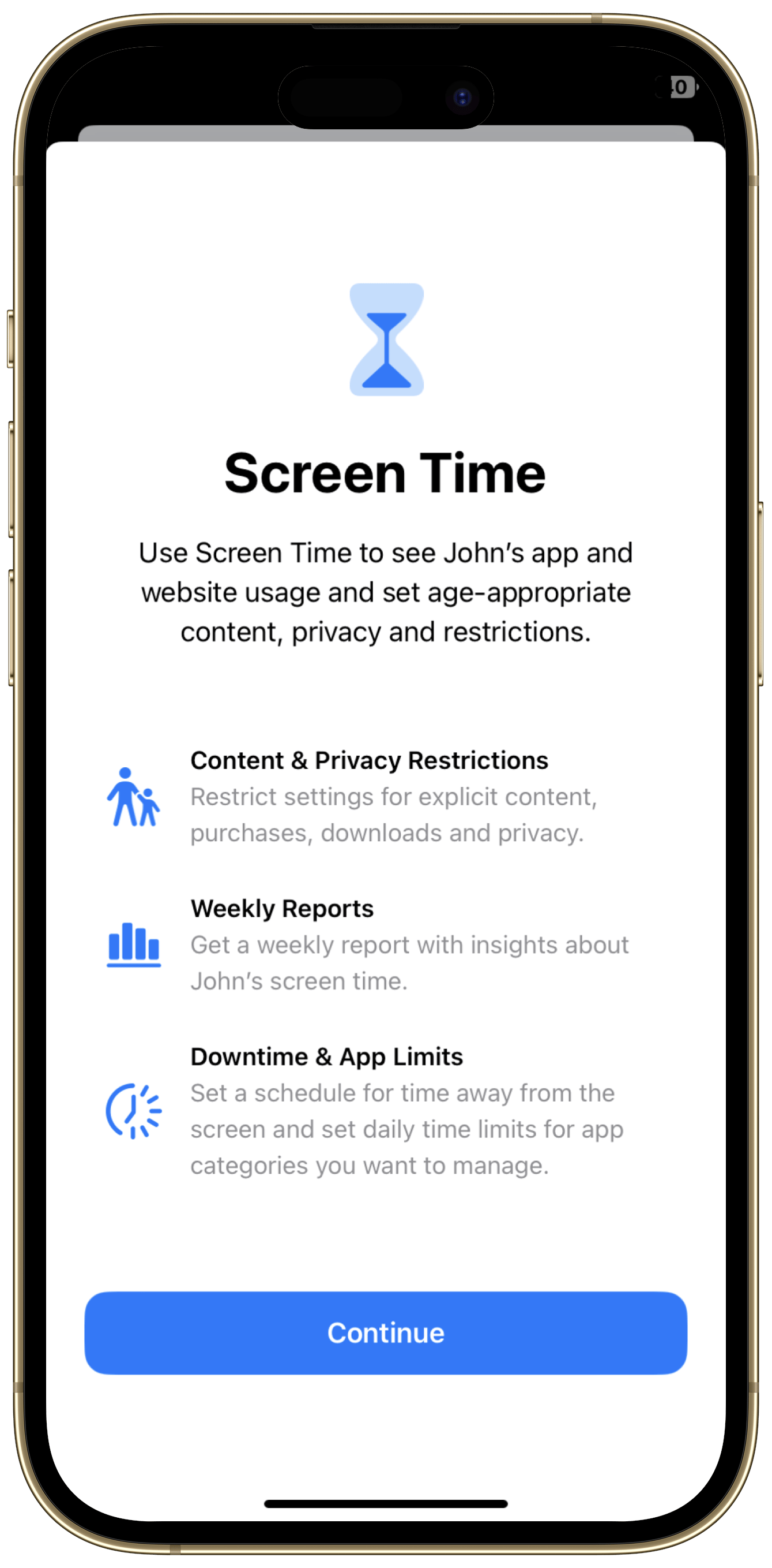 Tap “Continue” to allow access to Screen Time.