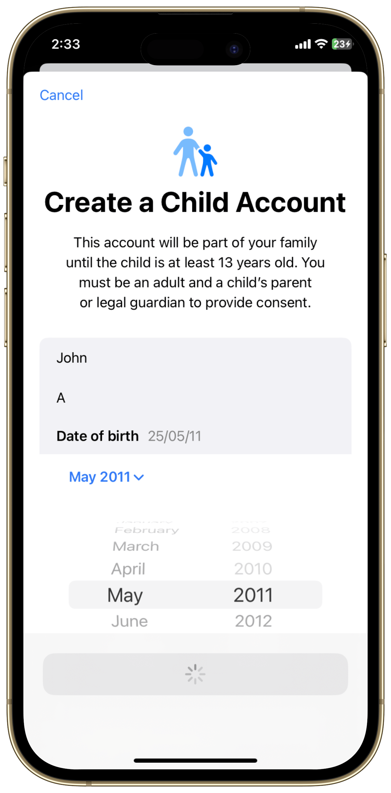 Enter the correct birth date (it can't be changed later).