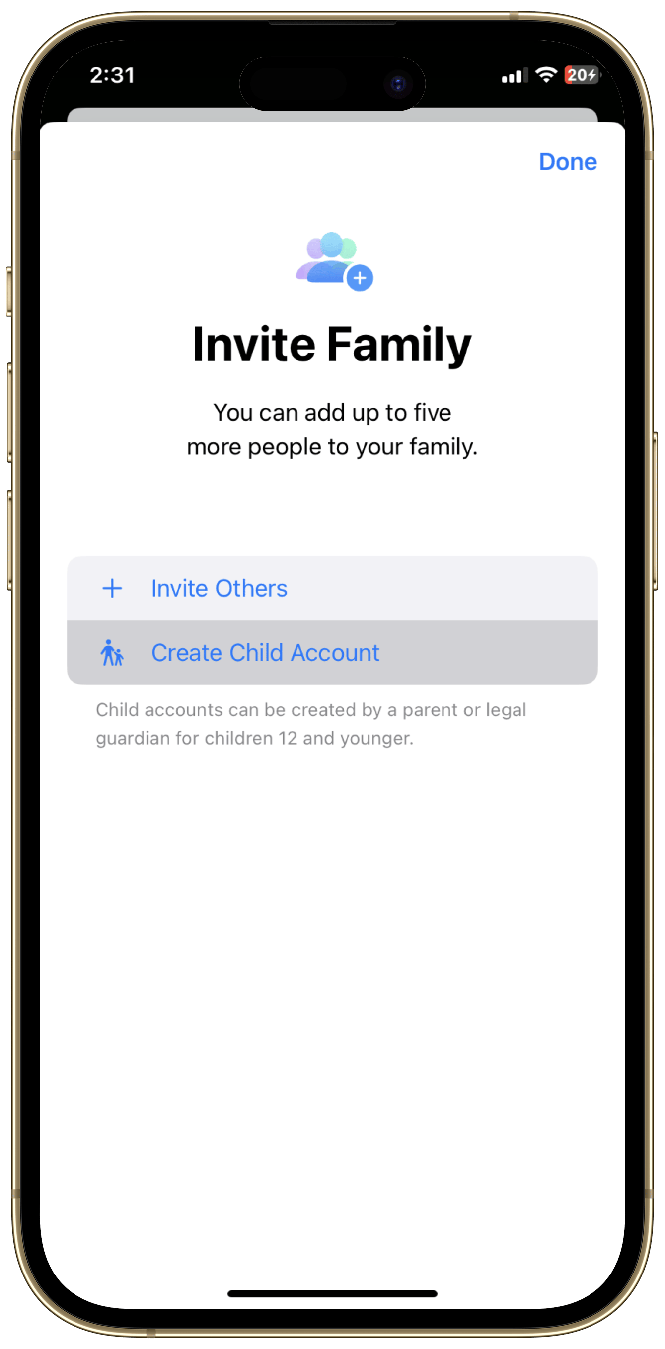 Tap “Create Child Account” and then tap “Continue”