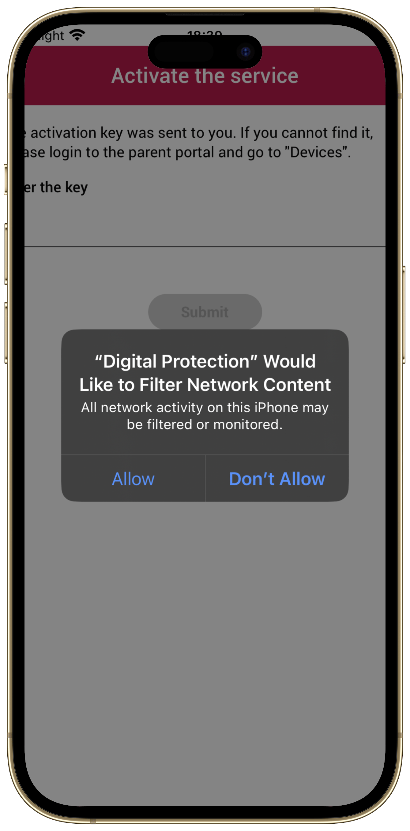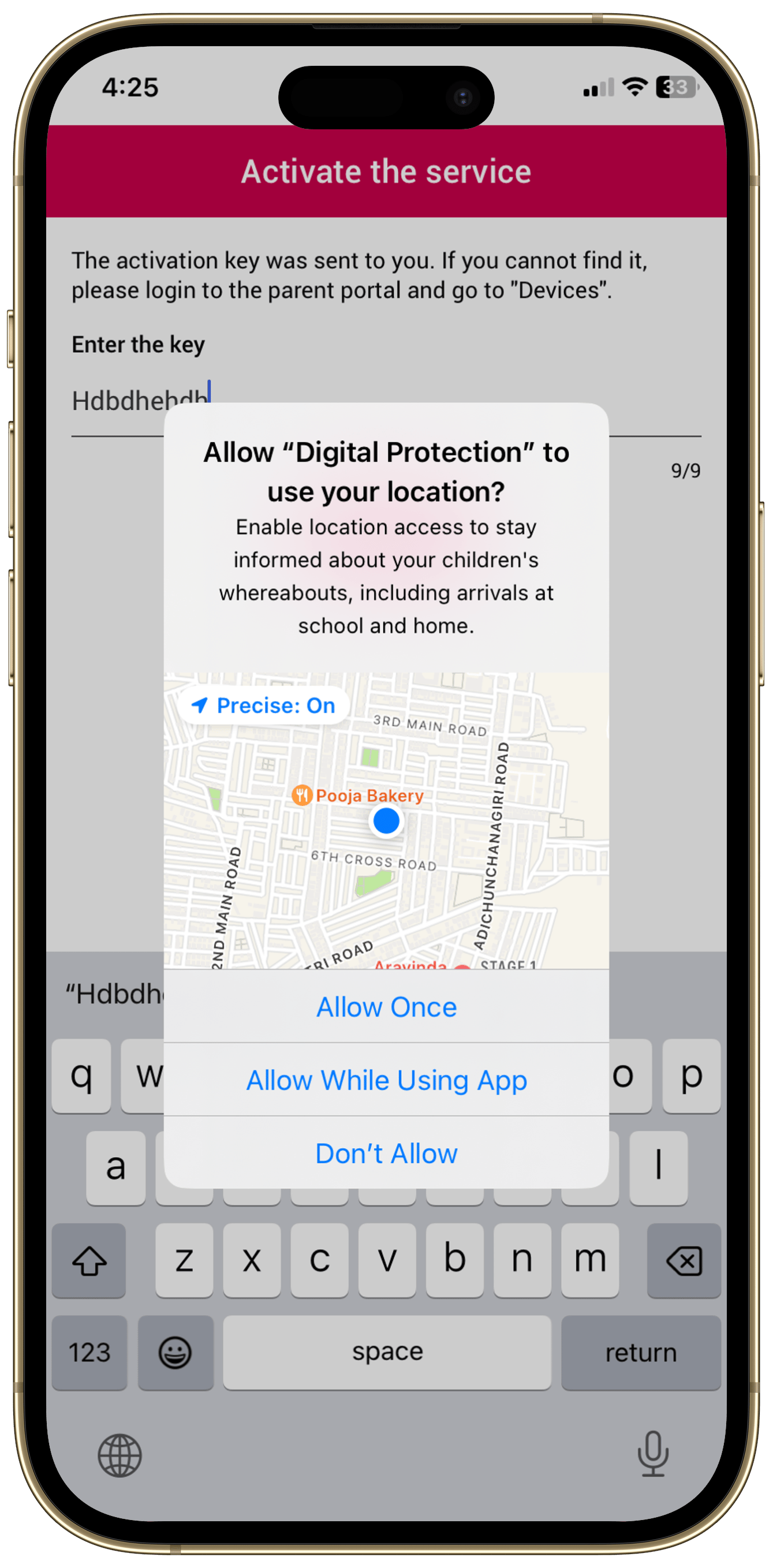 Enter the activation key sent via email or found on the Parent Portal. Tap “Submit”.